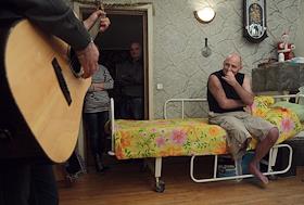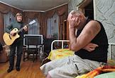 Бывший главный редактор газеты "Химкинская правда" Михаил Бекетов у себя дома во время концерта бардов, организованного Фондом помощи журналисту.