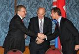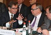 Президент "Альфа-банка" Петр Авен (слева) и президент "Внешторгбанка" Андрей Костин (в центре) на заседании межправительственного комитета по торговле и инвестициям в Президент Отеле.