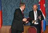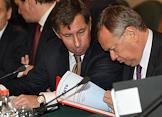 Президент "Альфа-банка" Петр Авен (слева) и президент "Внешторгбанка" Андрей Костин (справа) на заседании межправительственного комитета по торговле и инвестициям в Президент Отеле.