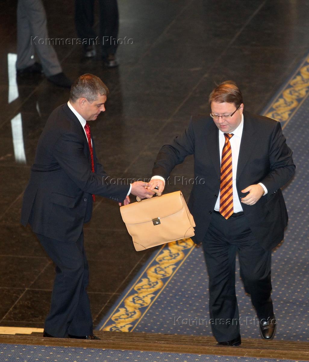 Председатель Высшего Арбитражного суда России Антон Иванов (справа) на пленарном заседании совета судей России в "Президент-отеле".