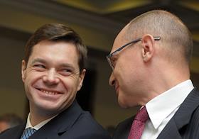 Председатель совета директоров ОАО "Силовые машины" Алексей Мордашов (справа) и глава Федерального агентства по атомной энергии (Росатом) Сергей Кириенко (слева) во время заседания правления фонда "Центр стратегических разработок "Северо-Запад", приуроченное к десятилетию фонда.
