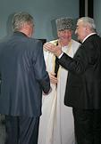 Председатель Координационного центра мусульман Северного Кавказа (КЦМСК) Исмаил Бердиев (в центре) на первой конференция Общественного совета Северо-Кавказского федерального округа, созданного по поручению президента России.