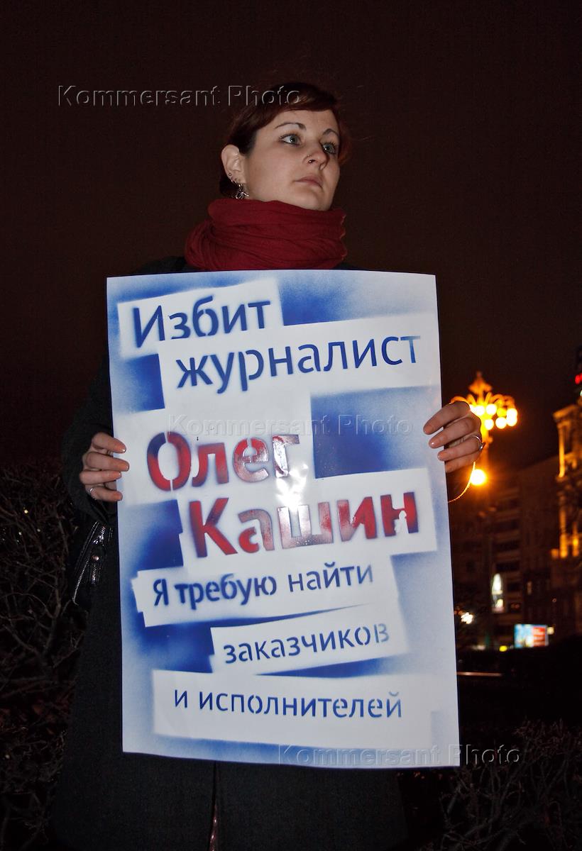 Пикет с требованием найти заказчиков нападения на журналиста издательского дома (ИД) "Коммерсантъ" Олега Кашина прошел на Пушкинской площади.