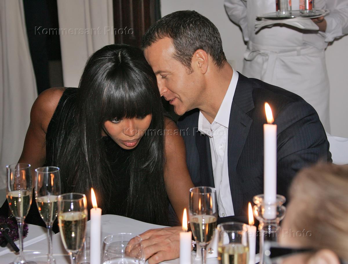 Модель Наоми Кэмпбелл (слева) и председатель совета директоров "Капитал Групп" Владислав Доронин (справа) на ужине по случаю открытию выставки "Louis Vuitton. Искусство моды" в Доме Спиридонова.