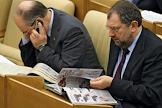 Член комитета Государственной думы России по бюджету и налогам Владимир Пехтин (слева) и председатель комитета Государственной думы России по финансовому рынку Владислав Резник (справа) на заседании Госдумы.
