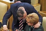 Член Комитета Государственной Думы России по делам молодежи Светлана Хоркина (слева) и член комитета ГД по энергетике Владимир Марков (справа) на заседании Госдумы.