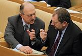 Первый заместитель генерального прокурора России Александр Буксман (слева) и заместитель министра здравоохранения и социального развития России Максим Топилин (справа) на заседании Государственной думы России.