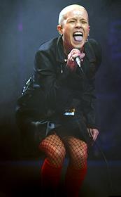 Солистка группы "Земфира" Земфира Рамазанова выступает на рок-фестивале "Максидром 2002" в спортивном комплексе "Олимпийский".