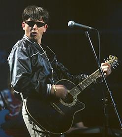 Лидер группы "Мумий - тролль" Илья Лагутенко после выступления на рок-фестивале "Максидром 2002" в спортивном комплексе "Олимпийский".
