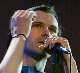 Лидер группы "Мумий - тролль" Илья Лагутенко выступает на рок-фестивале "Максидром 2002" в спортивном комплексе "Олимпийский".
