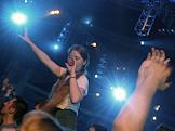 Солистка группы "Тотал" выступает на рок-фестивале "Максидром 2002" в спортивном комплексе "Олимпийский".
