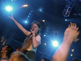 Зрители на рок-фестивале "Максидром 2002" в спортивном комплексе "Олимпийский".