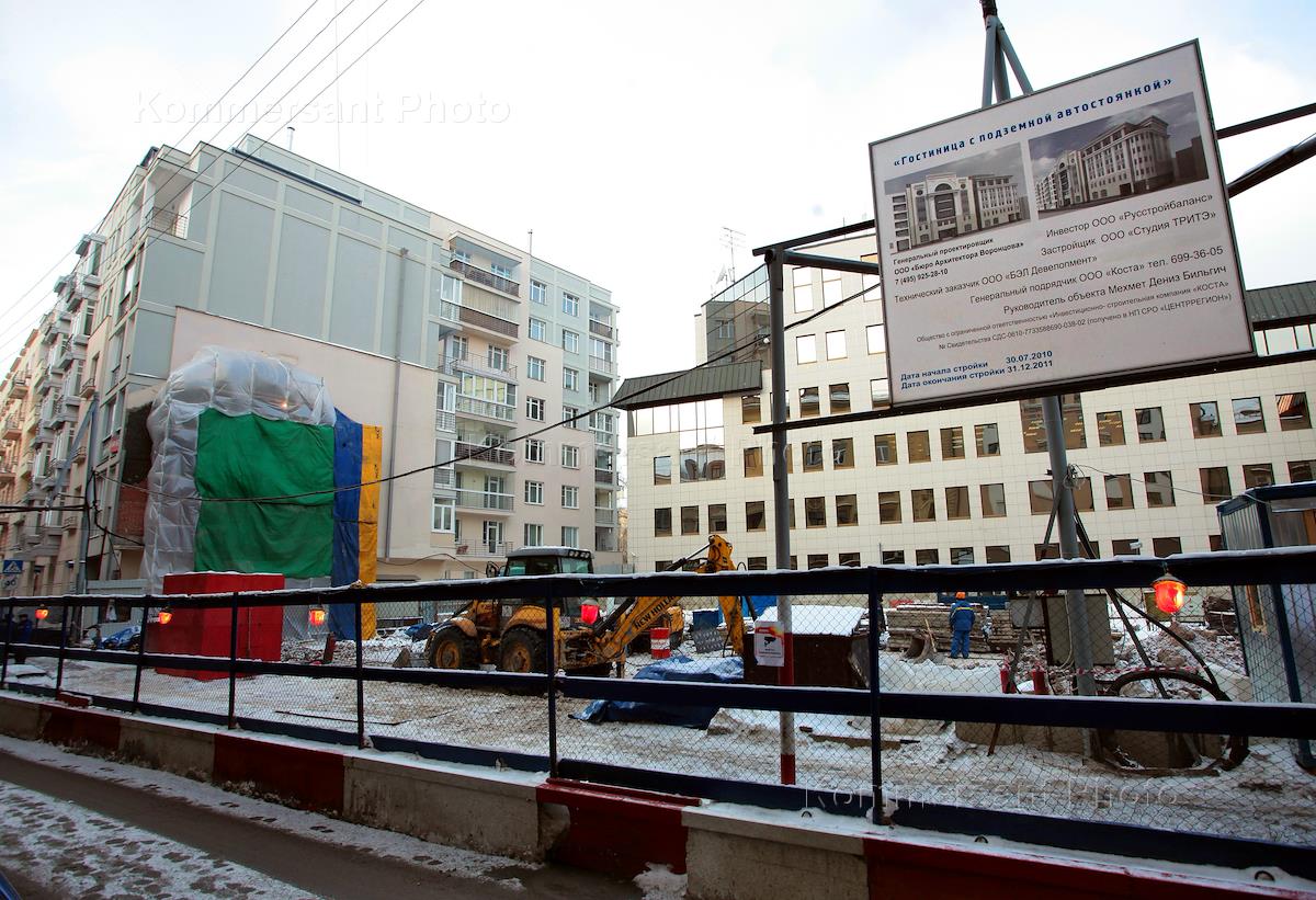 Construction of seven-story hotel with underground parking. The developer is the TRITE Studio owned by film director Nikita Mikhalkov.