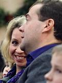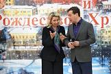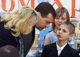 Президент России Дмитрий Медведев (справа) с супругой Светланой (слева) поздравили воспитанников детского дома № 3 города Иваново с Новым годом и Рождеством Христовым.