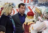 Президент России Дмитрий Медведев (справа) с супругой Светланой (слева) поздравили воспитанников детского дома города Иваново с Новым годом и Рождеством Христовым.