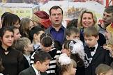 Президент России Дмитрий Медведев (в центре) с супругой Светланой (вторая справа) поздравили воспитанников детского дома № 3 города Иваново с Новым годом и Рождеством Христовым.