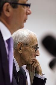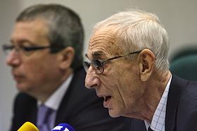 Адвокат Юрий Шмидт (справа) во время пресс-конференции "Второй судебный процесс Ходорковского и Лебедева. Итоги и перспективы обжалования". Пресс-конференция прошла в агентстве "Интерфакс".