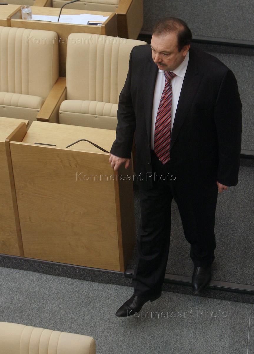 Член комиссии ГД по рассмотрению расходов федерального бюджета, направленных на обеспечение обороны и государственной безопасности России, член комиссии ГД по законодательному обеспечению противодействия коррупции Геннадий Гудков на пленарном заседании Государственной думы России.