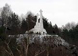 Виды города Вильнюс. Памятник в виде трёх белых бетонных крестов на Трехкрестовой горе (Лысой или Кривой) на правом берегу Вильни, в память о мученической смерти монахов францисканце.