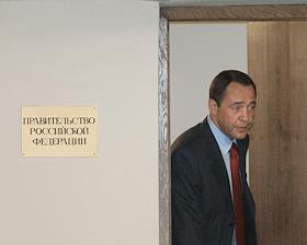 Министр России по делам печати, телерадиовещания и средств массовых коммуникаций Михаил Лесин (слева) на очередном заседании Совета Федерации России.