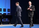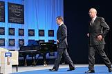 Президент России Дмитрий Медведев (слева) и швейцарский экономист, основатель и президент Всемирного экономического форума Клаус Шваб (справа) на Всемирном экономическом форуме в Давосе.