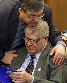 Член комитета Государственной думы России по образованию Валерий Рязанский (слева) и член комитета Государственной думы России по бюджету и налогам Геннадий Кулик (справа) на заседании Госдумы.