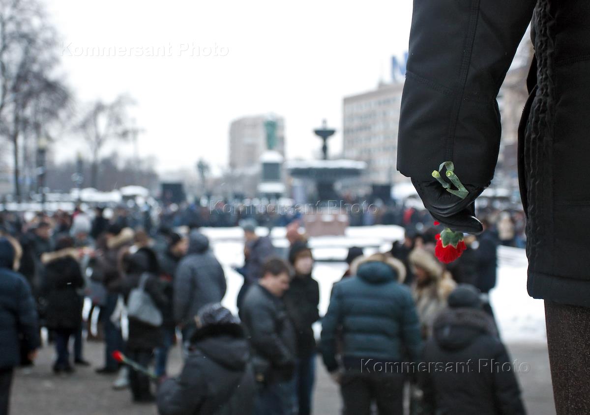 Митинг памяти погибших в результате теракта в аэропорту Домодедово, организованный активистами "Молодой гвардии "Единой России". Митинг прошел на Пушкинской площади.