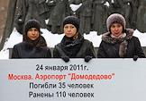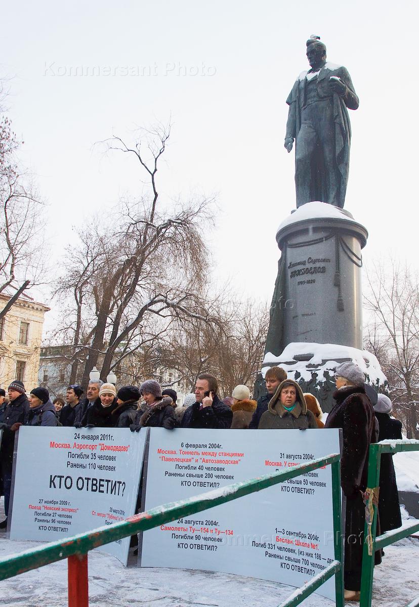 Участники траурного пикета памяти погибших в результате теракта в аэропорту "Домодедово", организованный партией "Яблоко". Пикет прошел у памятника Александру Грибоедову на Чистых прудах.