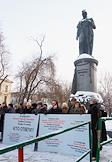 Траурный пикет памяти погибших в результате теракта в аэропорту "Домодедово", организованный партией "Яблоко". Пикет прошел у памятника Александру Грибоедову на Чистых прудах.