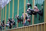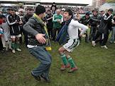 Болельщики и футболисты празднуют победу команды "Анжи" (Махачкала) в матче на стадионе "Динамо".