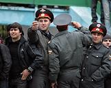 Сотрудники правоохранительных органов во время футбольного матча с участием команды "Анжи" (Махачкала) на стадионе "Динамо".