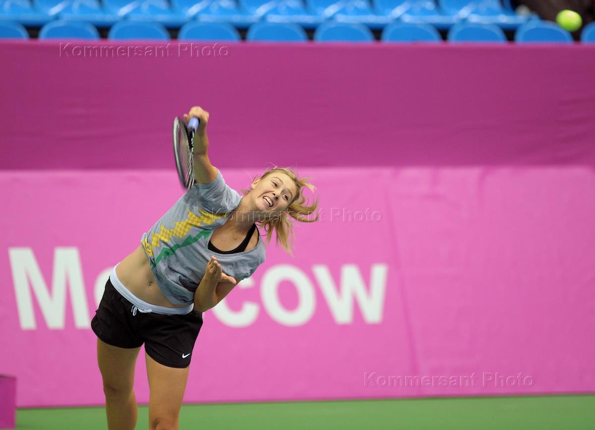 Российская теннистка Мария Шарапова на тренировке женских сборных команд России и Франции в преддверии Кубка Федерации - 2011 в спортивном комплексе "Олимпийский".