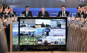 Председатель правительства России Владимир Путин на совещании в формате видеоконференции по подготовке ХХVII Всемирной летней универсиады.