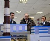 Слева направо: директор ТЭЦ-22 Нелотко Владислав, генеральный директор ОАО "Территориальная генерирующая компания – 1" Борис Вайнзихер, председатель правительства России Владимир Путин и заместитель председателя правительства России Игорь Сечин во время осмотра территории Южной теплоэлектроцентрали (ТЭЦ-22).