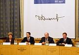 Слева направо: вдова первого президента России Наина Ельцина, руководитель администрации президента России Сергей Нарышкин, председатель фонда Академии российского телевидения Михаил Швыдкой и генеральный директор "Роснано" Анатолий Чубайс на международной конференции "Президент Б.Н. Ельцин и новая Россия. К 80-летию первого президента России". Конференция прошла в "Президент-отеле".