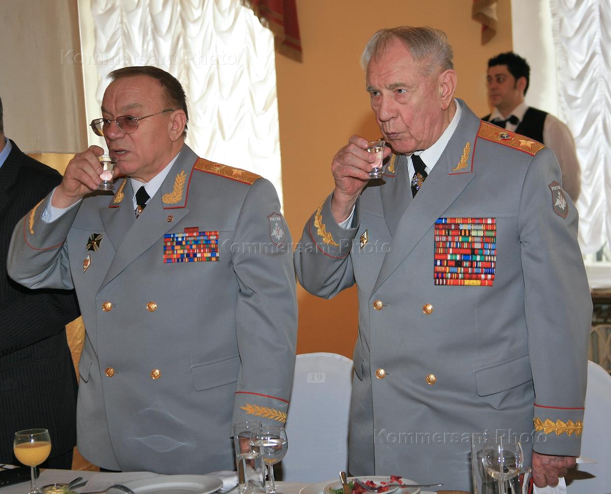 President of the Club of Russian Military Commanders Gen. Anatoly Kulikov (left) and Marshal of the Soviet Union Dmitry Yazov (centre) at a reception for marshals, generals and admirals in honor of the Fatherland Defender Day.