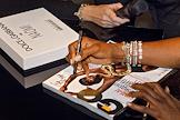 Модель Наоми Кэмпбелл оставляет автограф на обложке журнала GQ на презентации лимитированной коллекции футболок Dolce & Gabbana, созданных в честь 25-летия карьеры Наоми Кэмпбелл в модельном бизнесе. Презентация прошла в бутике Dolce & Gabbana в Третьяковском проезде.