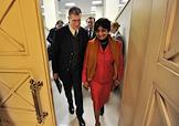 Уполномоченный ООН по правам человека Наванетхем Пиллай (справа) после встречи с членами Общественной палаты России.