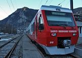Поезд "Сен-Бернар экспресс" на железнодорожной станции горнолыжного курорта Вербье (Verbier).