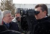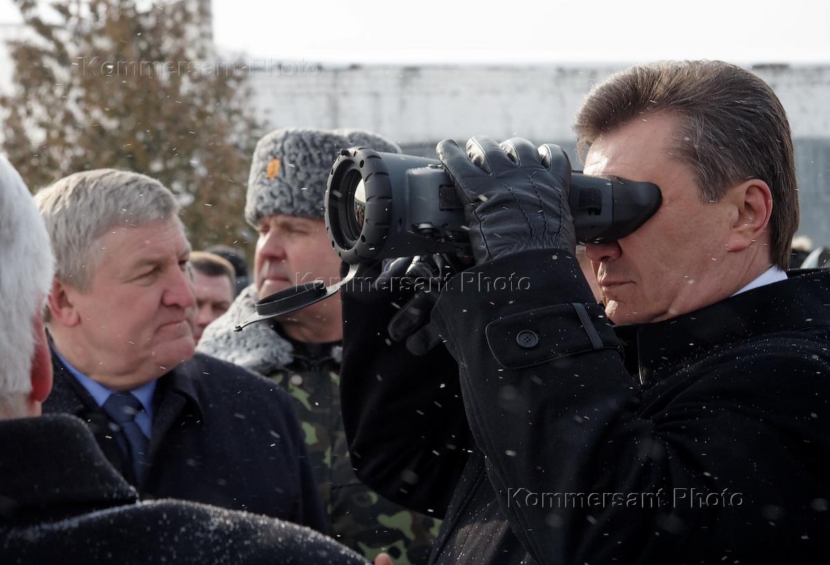 Президент Украины Виктор Янукович (справа) и министр обороны Украины, адмирал Михаил Ежель (слева) во время посещения 169-го учебного центра сухопутных войск Вооруженных Сил Украины (ВСУ) в поселке городского типа Десна.