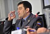 Начальник отдела исполнения административного законодательства ГИБДД ГУВД по городу Москве Олег Шульженко после видеомоста Москва - Санкт-Петербург "Банковские карты в руках инспекторов ГИБДД". Видеомост состоялся в новом зале пресс-центра РИА "Новости".