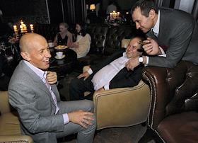 Актер Егор Пазенко (слева) и директор по внешним коммуникациям ОАО "Магнитогорский металлургический комбинат" (ММК) Владимир Руга (справа) на презентации новой коллекции ювелирного дома Gavello в ресторане "Большой".
