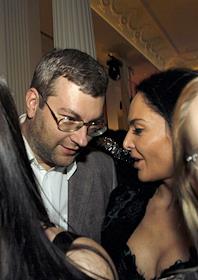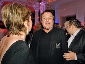 Директор по внешним коммуникациям ОАО "Магнитогорский металлургический комбинат" (ММК) Владимир Руга (слева) и певица Миранда Мирианашвили (справа) на презентации новой коллекции ювелирного дома Gavello в ресторане "Большой".