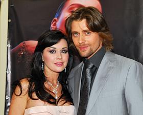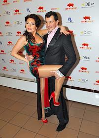 Актриса Анастасия Заворотнюк (слева) и фигурист Петр Чернышев (справа) на первой церемонии вручения премии за лучшие телевизионные сериалы "Золотой носорог". Церемония прошла в Театре Киноактера.