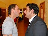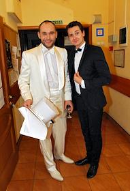 Актёры Оскар Кучера (слева) и Михаил Полицеймако (справа) на церемонии вручения премии за телевизионные сериалы "Золотой Носорог".