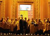Президент России Дмитрий Медведев (в центре) во время посещения главного буддийского храма (хурул) Калмыкии "Золотая обитель Будды Шакьямуни".