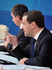 Президент России Дмитрий Медведев (справа) во время заседания президиума Госсовета на тему: "О повышении устойчивости функционирования электроэнергетического комплекса".