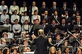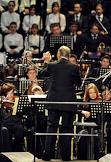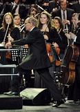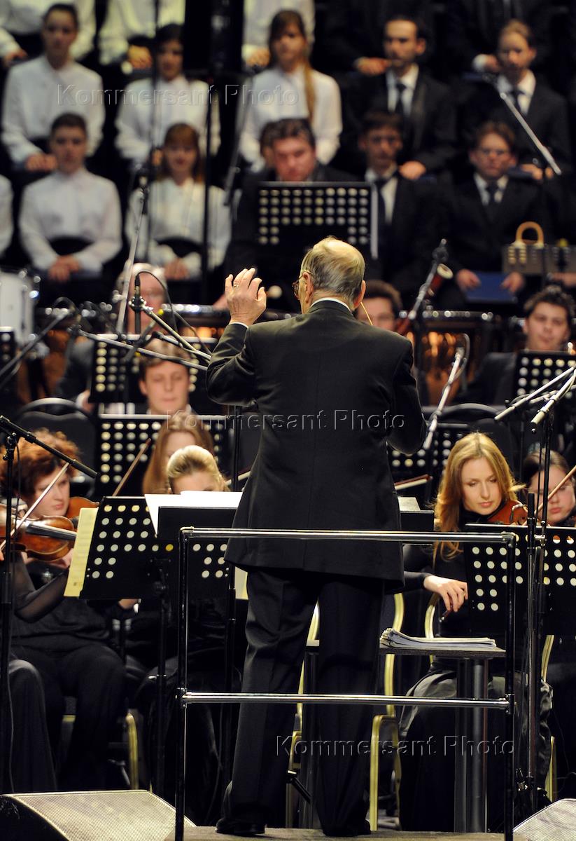 Композитор, аранжировщик и дирижер Эннио Морриконе во время концерта на сцене концертного зала Crocus City Hall.