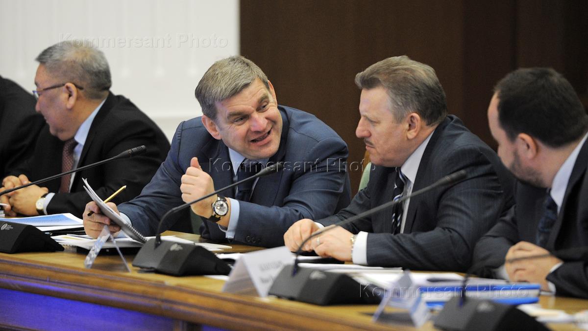 Губернатор Приморского края Сергей Дарькин (второй слева) и губернатор Хабаровского края Вячеслав Шпорт (второй справа) на совещании о комплексном развитии топливно-энергетического комплекса Восточной Сибири и Дальнего Востока.