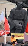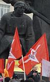 Руководитель Московского отделения Федерации автовладельцев России (ФАР) Сергей Канаев (слева) и лидер оппозиционного движения "Левый фронт" Сергей Удальцов (справа) во время проведения акции протеста против повышения цен на топливо. Митинг, организованный Федерацией автовладельцев России, прошел на площади Краснопресненской заставы у станции метро "Улица 1905 года".